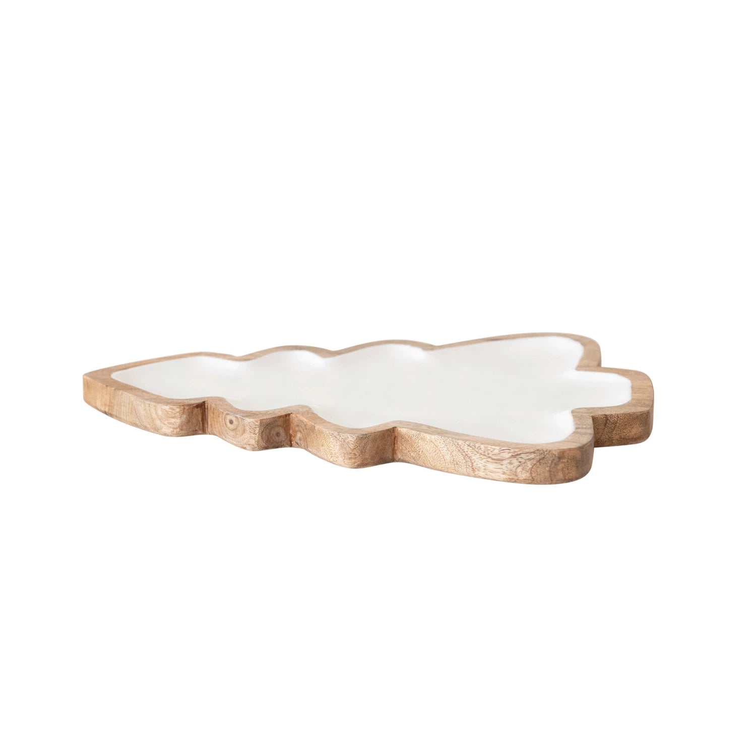 Celebrate the spirit of the season with this charming Christmas tree-shaped tray, hand-crafted from warm mango wood and adorned with a delicate white and natural enamel finish. Its gently rustic silhouette invites a touch of festive nostalgia—perfect for serving sweet treats or displaying cherished holiday décor.