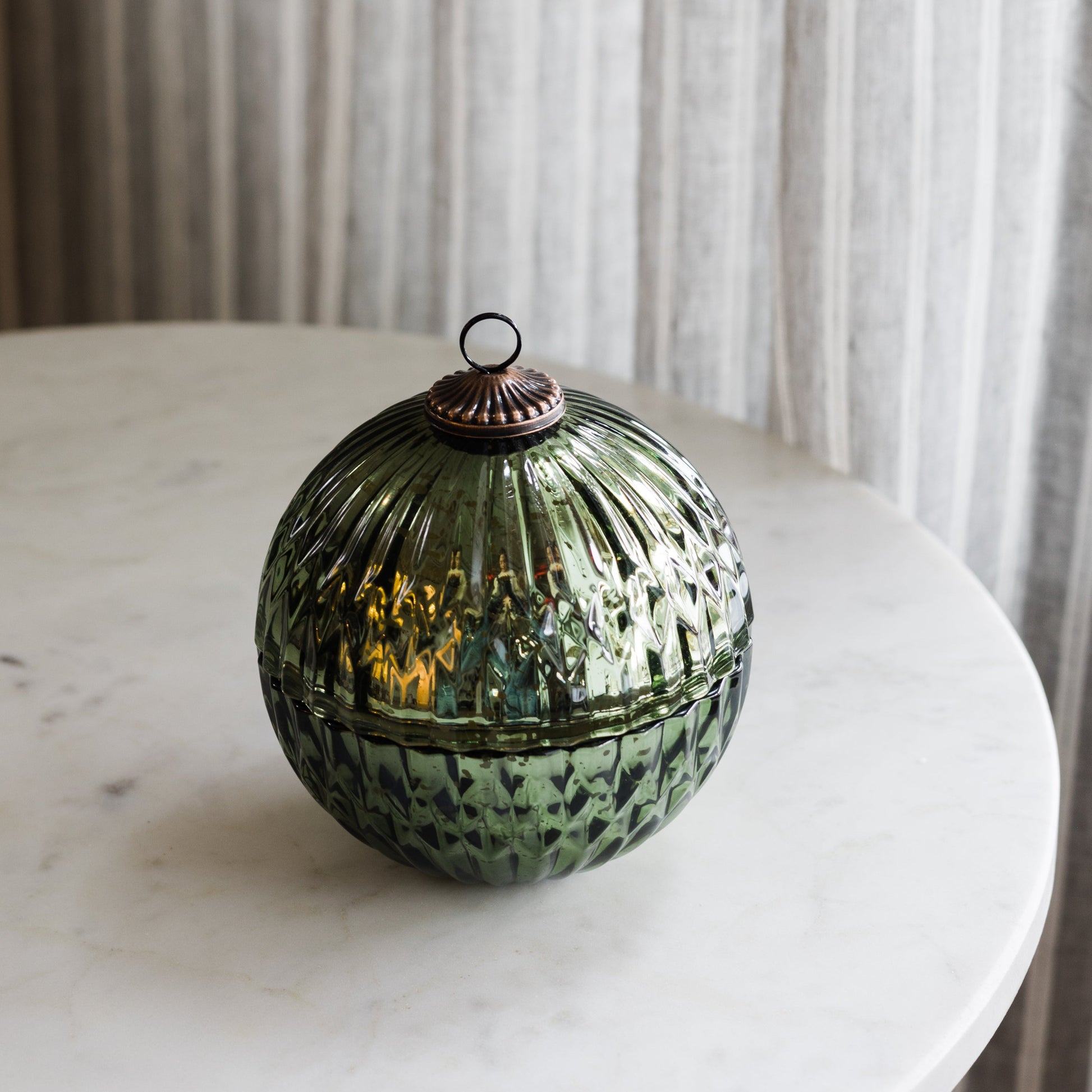 Embrace the essence of the season with our best-selling holiday fragrance: Balsam & Cedar. Housed in a shimmering green mercury glass ornament, this classic scent blends rich oak moss, warm cinnamon, and refreshing eucalyptus—evoking the comfort of winter forests and festive gatherings.