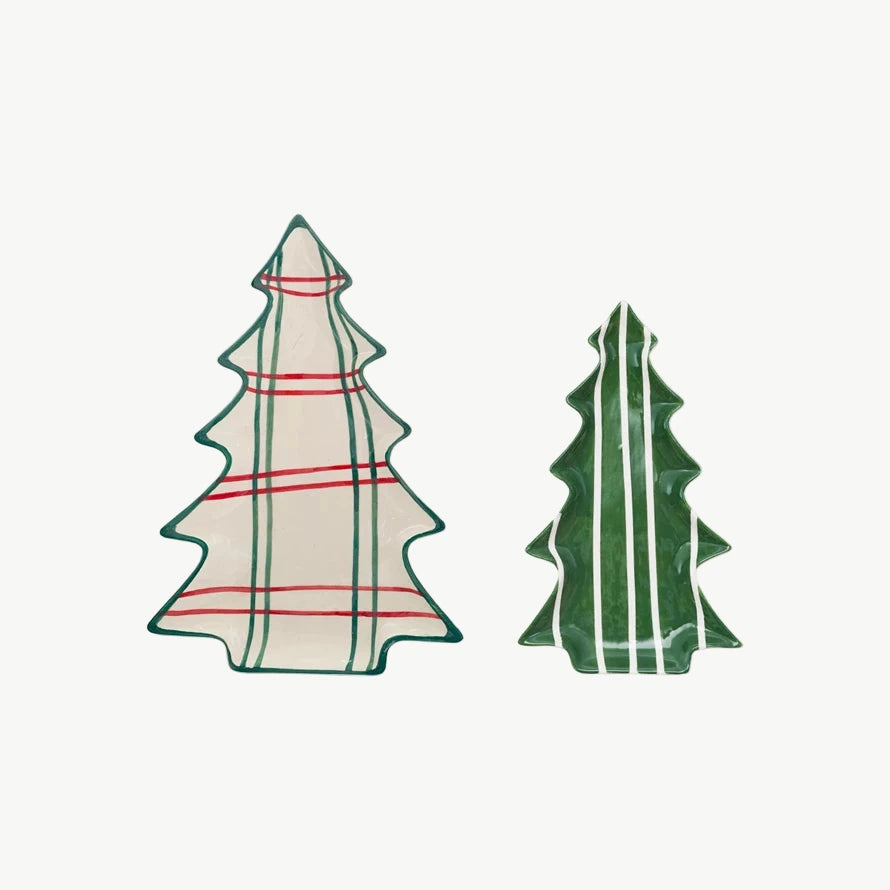 With a nod to vintage holiday cheer, this set of two hand-painted ceramic plates brings a whimsical yet refined spirit to your seasonal table. Shaped like stylized evergreens and adorned with classic stripe patterns, each plate is a small celebration — perfect for offering cookies, hors d’oeuvres, or festive sweets.