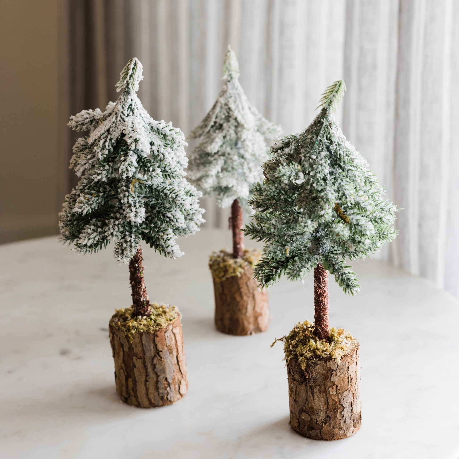Available in three distinct styles, each tree stands beautifully on its own or grouped together for a woodland-inspired display. Perfect for mantels, shelves, or tabletops, it brings a touch of refined seasonal magic to any space.