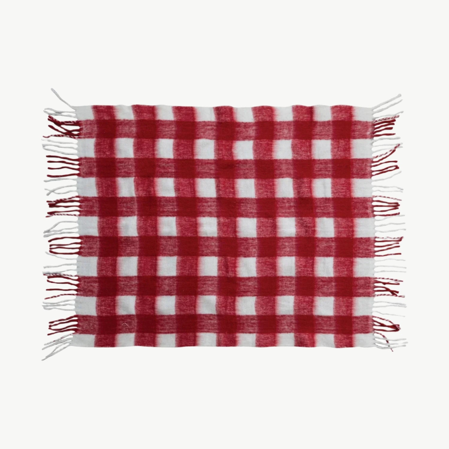 Woven Acrylic Throw with Fringe – Red & White Plaid